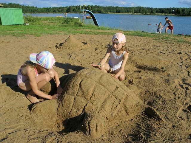 Санаторий Боровое располагает собственным просторным пляжем на берегу озера с лежаками и зонтиками, благодаря чему летом гости санатория могут загорать и купаться.