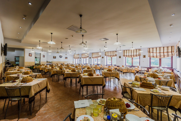 Зал для питания по системе "шведский стол" одновременно вмещает в себя до 80 человек. Приобретая путёвку с типом питания Шведский стол нужно понимать, что популярные блюда могут быстро заканчиваться.